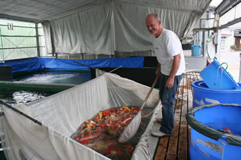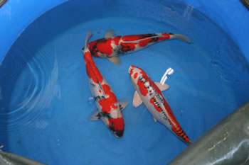 Bij mijn aankomst te Ogatakoifarm is het zeer rustig. Reeds eerder deze week hebben dealers van UK en Duitsland hun koi geselecteerd. Die dag was ik de enige op de farm, dit gaf me de mogelijkheid om rustig te selecteren Prachtige ginrin-showa, yamabuki, kikukuryo, kikisui genieten mijn voorkeur. Daar voor ons en onze klanten, hoge kwaliteit prioriteit is, koop ik enkel topvissen uit de ‘’First Green House” allen showkwaliteit. Mooie shiro, Doits Showa, Doits Kujaku, Ginrin Showa , Ochiba met speciale patronen en nog vele andere.